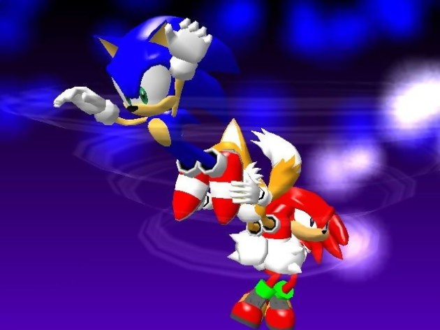 - La Sonic team : Sonic court vite, Knuckles tape fort, et Tails vole dans les airs en portant les deux autres.