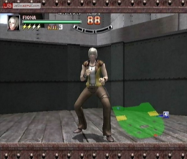 La descente aux enfers de Spikeout Battle Street commence peu après la scène d’introduction présentant l’histoire insipide du jeu. Une guerre des gangs fait rage sur l’île de Diesel Town depuis plus de dix ans. L’équipe Inferno s’est faite botter les fesses par les beaux gosses de la Team Spike. Mais son leader, Michael, est bien décidé à conquérir la ville et revient donc à la charge avec une armada de bad boys. Cependant, il va se heurter à un nouveau groupe dirigé par le fils du célèbre Spike répondant au nom de Spike Jr. Original vous avez dit ? Cette nouvelle équipe se compose de quatre protagonistes pas charismatiques pour un sou. Deux gars et deux gonzesses font office de protecteurs : Spike Jr, Min Hua, Jackal et Fiona. Chacun possède son propre style de combat. Boxe, combat de rue, Ba Ji Quan, mais la palme du meilleur style est décernée à Fiona. Il s’agit d’un ersatz de taekwondo, pour reprendre les mots de Sega : « coups de pied façon taekwondo ». Cela annonce bien l’aspect brouillon qui s’émane du titre. En effet, la maniabilité est loin, mais alors très loin, d’être exemplaire. Les personnages possèdent à tout casser une quinzaine de coups différents allant du simple bourre-pif aux projections et aux attaques spéciales. Les combos sont plus que simplistes puisqu’ils n’impliquent que l’utilisation de deux boutons. Par conséquent, les combos sont guère impressionnants car n’excédant pas les 6 ou 7 coups d’affilée. Grosso modo, on tapote comme un forcené les boutons X et Y en dirigeant le stick analogique vers l’ennemi le plus proche, sans vraiment prêter attention à l’action tellement celle-ci est mollassonne. Même les super attaques n’arrivent pas à nous procurer un soupçon de plaisir. Leur simple intérêt réside à se débarrasser des adversaires qui vous ont encerclés ou entamer de façon importante la jauge de santé des boss.