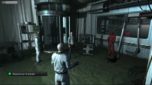 Rien de bien compliqué pour un triple sauveur du monde, mais celui-ci va toutefois devoir donner un peu plus de sa personne que d’habitude s’il veut gagner la confiance de ses nouveaux partenaires. Première étape, indispensable, la prison. C’est dans le cadre accueillant d’un complexe de haute-sécurité que Sam doit se lier avec Jamie, l’une des éminences grises de la JBA et, après six mois de promiscuité contrainte, se faire la belle en sa compagnie. Pas le temps de respirer que vous voilà déjà confiné dans le QG de l’organisation terroriste, plus ouvert mais pas moins sinistre que votre précédent lieu de villégiature. Ce complexe, vous le visiterez à quatre reprises au cours de votre aventure. De nouveaux objectifs, et de nouvelles zones, s’ouvrent à chaque fois, et vous devez en profiter pour servir au mieux, non seulement votre nouvel employeur, mais également vos supérieurs de la NSA. Le brave Lambert, votre patron de toujours, auquel il va arriver quelques bricoles, n’oublie ainsi jamais de vous communiquer des ordres. Tâches ménagères d’un côté (déplacer un cadavre, armer des mines ou s’entraîner au tir font partie de vos obligations en tant que recrue de la JBA), contre infiltration pure (prélèvements d’empreintes, récupération d’informations confidentielles pour le compte de l’agence) de l’autre, votre double casquette a de bons et de mauvais côtés, auxquels vous ne pourrez que difficilement échapper. S’il est recommandé de contenter les deux camps dans l’enceinte du QG, sur le terrain, Sam ne pourra satisfaire les exigences, évidemment contradictoires, de ses deux employeurs.