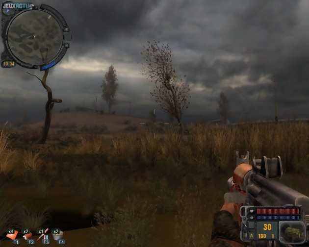 Cette quasi-absence de bugs (il en reste forcément quelques-uns, production d'Europe de l'est oblige) permet d'apprécier plus sereinement la fabuleuse ambiance du jeu et l'architecture des niveaux, aussi séduisantes et crédibles l'une que l'autre. Déambuler dans des plaines désertées, se frayer un chemin dans des ruines battues par la pluie et le vent, visiter des usines abandonnées ou des bateaux échoués et transformés en repaires, admirer la luminosité du crépuscule ou l'orage en cours avant de courir se réfugier vers l'abri le plus proche car une émission cataclysmique se prépare, ça n'a pas de prix ! Le jeu fait d'ailleurs la part belle à l'aventure et à l'exploration, quitte à reléguer au second plan les tout de même incontournables séquences de combat. Cette orientation un peu plus rôliste se voit confirmée par la présence d'une fonction de sommeil (attention à la fringale au réveil) et de nombreuses quêtes habilement scénarisées. Ici, les "rapporte-moi dix peaux de loups et va tuer douze bandits et demi" sont l'exception et non la règle. Nous ne sommes pas dans un vulgaire MMORPG. Digne de louanges à bien des égards, le jeu accuse tout de même son âge d'un point de vue purement graphique. Le moteur 3D a pourtant été remis au goût du jour puisqu'il est l'un des premiers à être compatibles avec les nouvelles cartes graphiques DirectX 11. Mais la différence ne saute pas aux yeux et certains choix techniques opérés lors du développement de l'arlésienne STALKER (sorti en 2007 et annoncé en 2001 !) font aujourd'hui un peu tache. On pense notamment à certains éléments de végétation un peu trop manifestement composés de sprites 2D. Rien de rédhibitoire heureusement car, en pratique, l'ambiance générale est suffisamment prenante pour qu'on oublie totalement ce genre de détails.