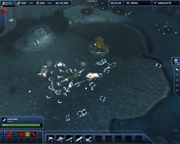 Cette folie des grandeurs est rendue possible par le système de ressources, basé sur des quantités inépuisables de Masse et d'Energie. Si les extracteurs de Masse ne peuvent être construits qu'en des points précis de chaque carte ils fournissent, une fois installés, un flot continu et illimité du précieux matériau. Même principe pour les centrales de production d'Energie qui, en plus, peuvent être érigées n'importe où. Il n'y a donc virtuellement aucune limite à la production d'unités et les stratégies attentistes, qui consisteraient à laisser l'ennemi épuiser ses ressources, sont définitivement vouées à l'échec. Pour ne pas que les parties s'enlisent, le jeu se dote d'un système de points de recherche capable de décupler la puissance des unités. Ces points, que l'on peut notamment obtenir en créant des stations de recherche et en détruisant des caches technologiques, donnent accès à cinq arbres de compétences, qui permettent respectivement d'améliorer les performances des structures, du Commander, des véhicules terrestres, de la flotte navale et des unités aériennes. Augmentation de la santé, des dégâts ou de la vision, ajout de capacités supplémentaires à tel ou tel type de troupes, amélioration du commandant suprême ou des unités classiques :  il faut savoir faire des choix éclairés, en accord avec une stratégie d'attaque bien précise. C'est également par ce biais qu'on débloque les unités expérimentales. Une nouvelle fois, les adeptes de l'effort et du mérite risquent de pester contre la facilité avec laquelle on peut accéder à ces troupes surpuissantes, mais les parties y gagnent incontestablement en dynamisme. Et le plaisir de contrôler un gigantesque porte-avions ou un T-Rex mécanique cracheur de feu n'est alors plus réservé à une élite.