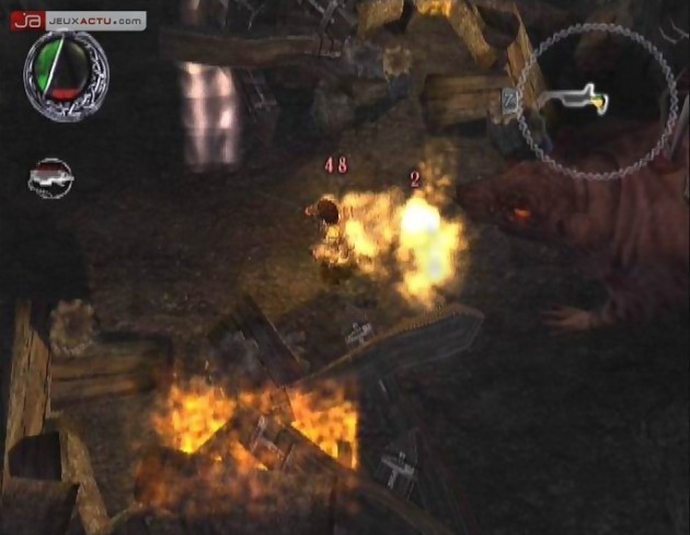Si du jeu de rôles, le jeu n’a gardé que le fait de pouvoir se déplacer sur une carte, des objets à équiper et un système de points d’expérience, tout le reste est au service de l’action et l’on se retrouve à enchaîner les combats contres des hordes de monstres à l’aide des différentes armes que l’on aura récupéré. Signalons d’ailleurs que le manque de coups à sortir est l’un des points faible du jeu. Quatre types armes étant disponibles avec un enchaînement pour chaque c’est un peu léger. Heureusement la magie est de la partie. Mais à magie, magie et demie. Ici pas de co-équipiers à convaincre pour aller larder du monstre. Non, vous les invoquer à l’aide de votre musique après avoir trouver les airs de part et d’autre du monde. Plus votre instrument est puissant, plus vous pouvez avoir de compagnons magiques (notamment un expert en détection de pièges aux mœurs déviants et un fameux rat Vorpal, les fans de Sacrée Graal des Monty Python y trouveront le digne cousin d’un lapin blanc…). Le jeu ne s’encombre pas non plus de fioles de vie ou de mana que l’on consomme goulûment dans quasi toutes les productions du moment. Ici, la régénération se fait à l’aide de cristaux peu nombreux dans le jeu et surtout dont le temps pour y accéder s’avère assez fatal en plein combat. A utiliser entre les combats donc et pas pendant, sinon c’est direction le cimetière et vu qu’il n’y a rien pour revenir à la vie…