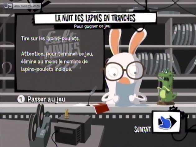 Enfin débarrassés d’un Rayman un peu trop encombrant, les Lapins Crétins agissent désormais seuls. Cette année, pour tenter d’amuser la galerie, ils ont décidé de parodier la télé et tous les programmes qui vont avec. Une bonne idée sur le papier, avec un jeu habillé pour l’occasion. Les menus, très classes, se révèlent être un vrai dessin animé interactif. On se délecte donc de naviguer parmi les modes de jeux qui nous sont proposés. Au programme, et c’est le cas de le dire, un mode "Solo" pour les joueurs solitaires, un mode "Party" pour ceux qui ont des amis, un mode "Entraînement" au cas où on aurait du mal à comprendre les différentes manœuvres, un "Concours Mondial" qui motivera les plus courageux et enfin la page "Crédits" pour voir quelles sont les personnes qui sont à l’origine de cette débandade absolue. Evidemment, le premier réflexe pour un party-game est de rameuter un maximum de joueurs pour se rendre compte si The Lapins Crétins Show mérite de faire partie des jeux qu’on sortira le soir de Noël et du Réveillon. Bonne nouvelle, il n’est plus nécessaire de devoir se taper tout le mode solo pour débloquer l’ensemble des épreuves. Un gain de temps considérable qui ravira tout le monde, Papy Marcel y compris.