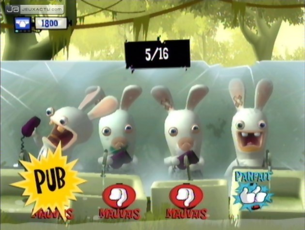 On a beau pardonner à la Wii – et accessoirement aux jeux qui sont développés dessus – son manque d’ambition technique, il faut bien admettre que les développeurs-tiers ne se foulent pas trop la cheville pour nous concocter des titres aux graphismes séduisants. Puisque la machine a clairement tourné le dos aux core-gamers et que le grand public ne semble pas s’attarder sur les graphismes, nombreux sont ceux qui focalisent leurs efforts sur l’aspect social qui permet d’amuser petits et grands, de Tatie Danielle à Papy Marcel en passant par Maman Véro et le petit Corentin. Tout le monde y trouve son compte, du moment qu’on passe du bon temps devant son téléviseur. Imaginé pour plaire à toute la famille, comme tous les films Disney, le premier épisode des Lapins Crétins avait été salué, aussi bien par la critique que par le grand public, grâce à un humour rafraîchissant et décalé mais aussi des mini-jeux bardés d’idées. Manque de bol, l’année suivante, Rayman contre Les Lapins ENCORE Plus Crétins ratait le coche, la faute à un manque cruel d’ambition, beaucoup de redites et une absence d’idées flagrante. Le changement de studio y était certainement pour quelque chose puisque le premier volet avait été développé par Ubisoft Montpellier, tandis que le second avait été pris en charge par Ubisoft Montreuil. Pour ce troisième épisode, c’est à nouveau le studio du 9-3 d’Ubisoft qui a été appelé pour remettre sur selle la franchise. A charge de revanche ?