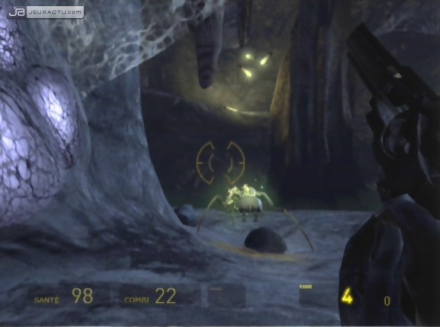 Le festival du FPS commence avec cette réédition bienvenue de Half-Life 2, sorti sur PC il y a trois ans déjà, puis adapté un an plus tard sur Xbox. On retrouve donc le héros du premier volet, Gordon Freeman, avec sa combi et ses lunettes tendance. Pour résumer, une expérience scientifique foirée avait mis un sacré boxon dans le centre Black Mesa, et Freeman s’était retrouvé au beau milieu de tout ça. Half-Life 2 débute dans un train, on ne sait pas trop ce qu'on fait là, mais arrivé à la gare, on se rend vite compte qu'on se trouve dans une société totalitaire avec la Police partout, des écrans géants diffusant la bonne parole d'un gourou et tout le toutim. Pour couronner le tout, d'étranges créatures arpentent les rues de la Cité 17 où notre héros vient d'arriver. Bref, ça commence bien ! Heureusement, un ancien pote de Black Mesa, Barney, déguisé en garde lui permet de s’évader pour finir par se retrouver l’une des pièces maîtresses de la résistance au Cartel, la mystérieuse organisation au pouvoir. Tout ça est donc un joli prétexte à faire vivre à Gordon un enfer pendant quatorze chapitres passionnants. Car Half-Life 2 a ceci de particulier qu'il mélange avec une facilité déconcertante scènes d'action très dynamiques et séquences très scénarisées à travers de cinématiques interactives. Ainsi à la manière de la séquence d'introduction mythique du premier épisode, le jeu ne prend jamais le risque de perdre votre attention en vous laissant toujours aux commandes, même si c'est juste pour regarder des gens discuter sans participer activement aux dialogues. Il faut ajouter à cela une progression certes linéaire, mais continue. Pas question de vous transporter d'un niveau à l'autre, tout se déroule en continue avec quelques chargements bien entendu. Du coup, malgré sa division implicite en chapitres s'autorisant des environnements et gameplay très variés, Half-Life 2 pourrait presque se vivre d'une seule traite ! Pourrait, car mine de rien, l'aventure dure une quinzaine d'heures (voir plus selon la difficulté et votre talent) et il faut bien dormir un peu. Mais on a du mal à poser la manette (ou la souris, c’est selon) une fois l'aventure commencée, un peu comme on a du mal à s'arrêter quand on commence à regarder une saison de 24h Chrono en DVD, si vous voulez...