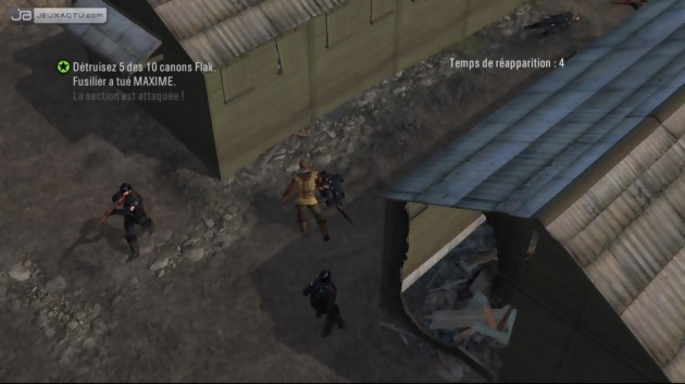 Pour être sur de ne pas confondre avec un jeu d’infiltration (sic), les objectifs sont toujours matérialisés à l’écran. De toutes façons, l’état major bien au chaud loin du front, ne manque jamais une occasion de vous dire ce qu’il faut faire. Mais n’espérez jamais l’annonce d’une semaine de vacances sur