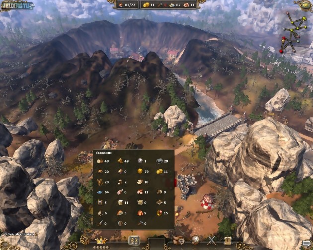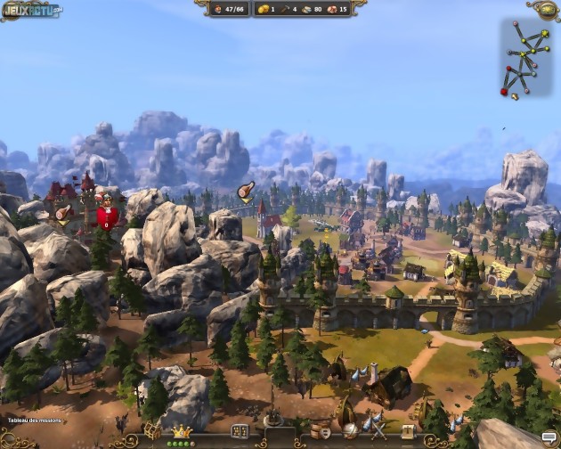 Il ne faut donc pas se fier outre mesure à l'aspect "trop mignon" des décors et personnages, particulièrement réussis par ailleurs. Sans jamais se montrer trop gourmand, le moteur 3D affiche des graphismes très plaisants et des animations extrêmement détaillées. Si le zoom minimum donne l'impression d'observer une fourmilière, placer la caméra au ras du sol permet en revanche d'admirer la précision avec laquelle sont simulées les activités des colons (représentés tout de même de manière un peu trop cubique). Observer le boulanger pétrir la farine et sortir du four un pain tout doré donnerait presque faim. L'interface ne manque pas non plus d'élégance et, surtout, s'avère très pratique. Passer le curseur de souris sur un bâtiment de production affiche ainsi de fines lignes le reliant à son entrepôt et à ses travailleurs. Parfait pour prendre conscience d'un mauvais placement, source d'une perte de temps préjudiciable à la bonne marche de la communauté. De même, le survol d'une icône suffit à afficher l'ensemble des ressources en stock, tandis qu'un menu de logistique permet de réorganiser à coup de glisser-déplacer l'ordre de priorité des différentes tâches en cours. Un seul bémol doit se faire entendre : il n'y a aucune commande d'accélération du temps. Lors des parties solo, quelques longueurs peuvent donc se faire sentir, même s'il est conseillé de mettre ce temps à profit pour optimiser les chaînes de production, qui ne le sont jamais trop. Il faut d'ailleurs compter au minimum une à deux heures pour venir à bout d'une simple partie, ce qui augure d'une excellente durée de vie, notamment en multi. Du fait d'un habillage et de cinématiques cartoon, la campagne solo est fort sympathique mais le cœur du jeu réside vraiment dans les affrontements en ligne. Les maps sont d'ailleurs hautement personnalisables (nombre et types de points de victoire, ressources, capacité de défense des secteurs neutres...) ce qui assure d'un plaisir sans cesse renouvelé. Terminons en pointant du doigt un défaut commun à beaucoup trop de jeux : la localisation présente des ratés manifestes, telles ces technologies à débloquer qui, si l'on en croit leurs description, permettent de réduire la vitesse de production de certains travailleurs. Nous avons vérifié : elles ont heureusement l'effet inverse !