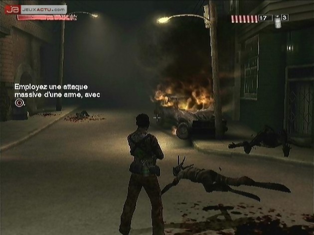 La série The Suffering est avant tout un jeu d’action qui s’apprécie à la troisième personne afin de contempler au mieux les pérégrinations de notre cher Torque de Carnate à Baltimore. Et si on ne tenait pas trop compte des problèmes de caméra l’année dernière, il faut avouer que cette année notre patience a des limites. Beaucoup plus ennuyeuse, la gestion des angles de vue devient tout bonnement horripilante dans des pièces exiguës telles que les embranchements d’égouts, les cages d’escalier ou les appartements. Et si par malheur la caméra fait des siennes durant les combats, alors on est bon pour passer trois plombes à tchintcher le stick analogique droit afin de la recentrer dans le dos de Torque. Pour palier à ce problème, il existe une solution qui m’amène donc au deuxième genre prédominant dans The Suffering : Les Liens qui nous unissent : le FPS. Vous pouvez, à tout moment et sans perte de rythme, basculer vers un affichage à la première personne beaucoup plus précis notamment lors des phases de shoot en bonne et due forme. Viser la tête des monstres à l’aide d’un Magnum 357, exploser un groupuscule d’ennemis ravagés de la caboche en tirant une roquette ou tout simplement briser quelques os avec un tuyau en guise de batte, rien ne sera plus facile que lorsque vous jouerez en First Person Shooter. A contrario, la caméra embarquée dans le dos du personnage manque sérieusement de précision à cause d’une raideur dans la visée ou dans les déplacements de Torque qui ne sont pas sans rappeler un certain Max Payne.