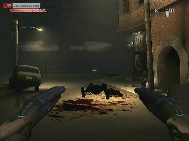 La série The Suffering est avant tout un jeu d’action qui s’apprécie à la troisième personne afin de contempler au mieux les pérégrinations de notre cher Torque de Carnate à Baltimore. Et si on ne tenait pas trop compte des problèmes de caméra l’année dernière, il faut avouer que cette année notre patience a des limites. Beaucoup plus ennuyeuse, la gestion des angles de vue devient tout bonnement horripilante dans des pièces exiguës telles que les embranchements d’égouts, les cages d’escalier ou les appartements. Et si par malheur la caméra fait des siennes durant les combats, alors on est bon pour passer trois plombes à tchintcher le stick analogique droit afin de la recentrer dans le dos de Torque. Pour palier à ce problème, il existe une solution qui m’amène donc au deuxième genre prédominant dans The Suffering : Les Liens qui nous unissent : le FPS. Vous pouvez, à tout moment et sans perte de rythme, basculer vers un affichage à la première personne beaucoup plus précis notamment lors des phases de shoot en bonne et due forme. Viser la tête des monstres à l’aide d’un Magnum 357, exploser un groupuscule d’ennemis ravagés de la caboche en tirant une roquette ou tout simplement briser quelques os avec un tuyau en guise de batte, rien ne sera plus facile que lorsque vous jouerez en First Person Shooter. A contrario, la caméra embarquée dans le dos du personnage manque sérieusement de précision à cause d’une raideur dans la visée ou dans les déplacements de Torque qui ne sont pas sans rappeler un certain Max Payne.