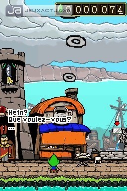 Forcément plus simplistes que ceux d'un The Legend of Zelda par exemple, ils ont au moins le mérite de capter notre attention, ce qui n’est pas forcément évident en temps normal. Malgré une approche audacieuse, le premier contact ludique avec Tingle RPG ne se veut pas - là encore - des plus positifs ; la faute à une prise en main complètement ratée. S’il est vrai que la DS dispose d’un écran tactile, il faudrait que Nintendo songe à ne pas nous imposer son utilisation, surtout lorsque celle-ci s’avère injustifiée. Ainsi, notre lutin se dirige classiquement à la croix, et toutes les interactions se font à l’aide du stylet. Un choix illogique puisque l’utilisation d’un seul bouton aurait aboutit à la même efficacité, et la prise en main aurait ainsi gagné en ergonomie. Par ailleurs, l’utilisation exclusive du stylet aurait permis de jouer avec la console tranquillement posée. Cela dit, l'ensemble s'imbrique assez bien, même si ces impressions mitigées vont polluer l’ambiance du titre. Avec son personnage principal complètement déjanté, on était en droit de s’attendre à un humour corrosif et permanent. A la place, c’est à peine si nous arriverons à trouver quelques mimiques et répliques qui font sourire. Une des principales cartes qu’avait à jouer Tingle RPG tombe donc à l’eau. Le jeu ne manque pourtant pas de bonnes idées, comme en témoigne le principe de compagnon. Cette sorte de garde du corps qu’il faudra rémunérer vous facilitera la tâche lors des combats et vous permettra de part ses aptitudes à atteindre ces lieux inaccessibles en temps normal. En parlant des combats, sachez que le principe est plutôt étrange, puisqu’il suffit en effet d’entrer en contact avec un ou des ennemis pour provoquer un nuage de poussière duquel vous devrez sortir vivant en le tapotant du bout du stylet. Super. Même pris dans une bagarre, Tingle pourra encore se déplacer pour happer d’autre créatures, car plus les ennemis combattus simultanément seront nombreux, plus les objets laissés le seront également. Terminons quand même par une note un peu plus positive, l’aspect technique. Pas forcément clinquante, la réalisation se situe facilement dans la moyenne de ce à quoi nous a habitué la dual screen de Nintendo; avec une mention spéciale pour certains décors et certains boss qui font plaisir à voir. C’est propre et efficace.