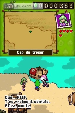 Forcément plus simplistes que ceux d'un The Legend of Zelda par exemple, ils ont au moins le mérite de capter notre attention, ce qui n’est pas forcément évident en temps normal. Malgré une approche audacieuse, le premier contact ludique avec Tingle RPG ne se veut pas - là encore - des plus positifs ; la faute à une prise en main complètement ratée. S’il est vrai que la DS dispose d’un écran tactile, il faudrait que Nintendo songe à ne pas nous imposer son utilisation, surtout lorsque celle-ci s’avère injustifiée. Ainsi, notre lutin se dirige classiquement à la croix, et toutes les interactions se font à l’aide du stylet. Un choix illogique puisque l’utilisation d’un seul bouton aurait aboutit à la même efficacité, et la prise en main aurait ainsi gagné en ergonomie. Par ailleurs, l’utilisation exclusive du stylet aurait permis de jouer avec la console tranquillement posée. Cela dit, l'ensemble s'imbrique assez bien, même si ces impressions mitigées vont polluer l’ambiance du titre. Avec son personnage principal complètement déjanté, on était en droit de s’attendre à un humour corrosif et permanent. A la place, c’est à peine si nous arriverons à trouver quelques mimiques et répliques qui font sourire. Une des principales cartes qu’avait à jouer Tingle RPG tombe donc à l’eau. Le jeu ne manque pourtant pas de bonnes idées, comme en témoigne le principe de compagnon. Cette sorte de garde du corps qu’il faudra rémunérer vous facilitera la tâche lors des combats et vous permettra de part ses aptitudes à atteindre ces lieux inaccessibles en temps normal. En parlant des combats, sachez que le principe est plutôt étrange, puisqu’il suffit en effet d’entrer en contact avec un ou des ennemis pour provoquer un nuage de poussière duquel vous devrez sortir vivant en le tapotant du bout du stylet. Super. Même pris dans une bagarre, Tingle pourra encore se déplacer pour happer d’autre créatures, car plus les ennemis combattus simultanément seront nombreux, plus les objets laissés le seront également. Terminons quand même par une note un peu plus positive, l’aspect technique. Pas forcément clinquante, la réalisation se situe facilement dans la moyenne de ce à quoi nous a habitué la dual screen de Nintendo; avec une mention spéciale pour certains décors et certains boss qui font plaisir à voir. C’est propre et efficace.
