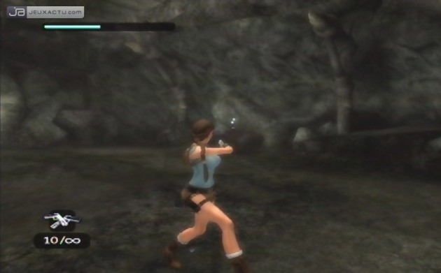 Mais en règle générale, on progresse facilement le pad en main qu’il s’agisse d’explorer les vestiges d’une ancienne civilisation ou lorsqu’il faut trouer la peau d’animaux féroces. Loups, ours, gorilles, pumas et même des dinosaures, le dépaysement est garanti mais on constate, à la différence des adversaires humains, que ce genre d’adversaires n’offre que peu de challenge. Impossible pour eux de crapahuter à votre hauteur, et vous, une fois perché, vous pouvez les arroser tranquillement. Pour palier à ce défaut, les développeurs ont rajouté une jauge de rage qui s’active lorsque vous videz votre chargeur sur une pauvre bête. Cette dernière se met à charger sur vous dans un ultime sursaut d’énergie et il ne vous reste que quelques secondes afin d’éviter le choc et, dans un effet à la Max Payne, d’aligner les deux réticules de visée avant de faire mouche. Une idée intéressante mais qui ne se renouvelle pas suffisamment au gré du bestiaire. Ça, c’est pour les petits avortons que vous croiserez sur votre route. Lorsqu’il s’agit de créatures plus coriaces, le gameplay se scinde en deux parties. La première accompagne une cinématique et à la manière de Shenmue, Fahrenheit et consort, vous devrez tapoter certains boutons au bon moment pour éviter de finir en pâtée pour chiens. Des Quick Time Events qui ne révolutionnent pas le genre mais qui pimentent les quelques cut-scènes du jeu. Mais en règle générale, Tomb Raider Anniversary ne propose pas une difficulté à s’arracher les cheveux. L’ensemble paraît beaucoup trop facile et bien que l’on passe une à une heure et demi pour terminer un niveau en y découvrant les tenants et aboutissants de ses mécanismes, le jeu d’Eidos Interactive possède une bonne durée de vie surtout si vous voulez découvrir tous les secrets de chaque région, déverrouiller les niveaux en contre la montre ou découvrir les bonus du jeu.