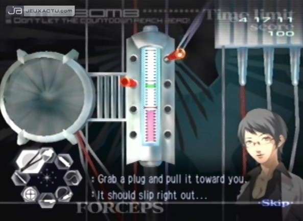 Après une courte période d’adaptation, vous pourrez vous prendre pour un virtuose du bistouri capable de faire des miracles avec une facilité déconcertante. Que les moins habiles se rassurent, un autre changement dans Trauma Center : Second Opinion réside dans le fait qu’il est désormais possible d’évoluer à son rythme et de diminuer les échecs sur certaines opérations grâce à la possibilité de choisir entre trois niveaux de difficulté – faible, normal ou difficile – et ce, pour chaque mission. Grâce à cette nouvelle option, vous vous éviterez une surtension et épargnerez à vos piles une vie trop éphémère. Atlus a bien soigné l’entrée de la série sur la Wii avec une optimisation des différentes actions du jeu, qui nous permet de profiter des capacités que nous offre la combinaison de la Wiimote et du Nunchuk. Ce lifting se remarque sur les instruments utilisés. Le traditionnel massage cardiaque a été remplacé par le défibrilateur où l’utilisation des deux mains est requise. Egalement, le faisceau lumineux de Nozomi sera bien utile pour éclairer les zones d’ombre. Il est aussi agréable de constater que la mission de désamorçage de la bombe a été complètement remaniée. Plus besoin de faire des cercles pour tourner des vis, il suffit désormais de mimer le tournevis en tournant la Wiimote. La simulation en devient presque palpable.