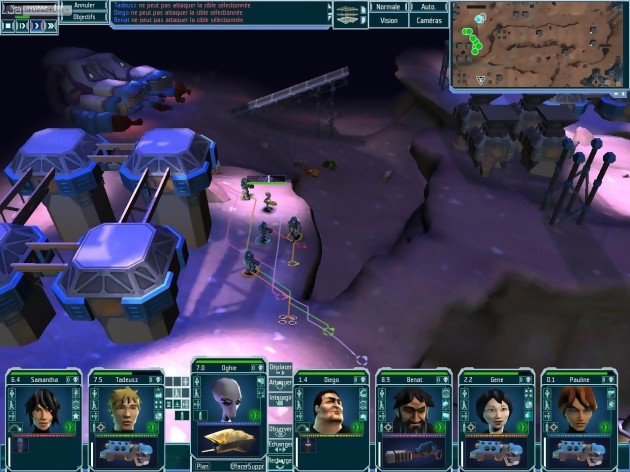 De monde et de visibilité également. Car il est difficile de s’y retrouver dans le foisonnement de menus, de sous-menus, d’indications imprécises et de zones cliquables – ou non –, ou d’identifier correctement les différents personnels, tant leur tronche, au format vignette, se ressemblent. Pour compliquer un peu plus votre tâche, certaines indications essentielles n’apparaissent pas sur tous les menus, et il faut, par exemple, naviguer entre bien des écrans pour obtenir les infos nécessaires à l’organisation d’un assaut. Mal pensé, UFO : Afterlight ? Plutôt trop exhaustif. Monstrueux usine à gaz, le titre d’Altar Interactive émerveille par sa richesse. Des technologies par dizaines, des aménagements à la pelle, et une liste d’équipements et d’armes à faire frémir les caciques de la NRA : poser un pied sur Mars, c’est risquer de ne pas redécoller de sitôt. Car bien que parfaitement lourdingue, l’aventure est également sérieusement addictive, et ce malgré l’extrême médiocrité de ses – trop nombreuses – séquences de combat. Des points de mission apparaissent régulièrement sur la carte mondiale. Si vous envoyez une équipe sur place, vous basculez sur une petite zone en 3D dans laquelle s’épanouissent quelques individus hostiles et jusqu’à six de vos soldats, que vous contrôlez en semi-temps réel. Le schéma est simple : vous commencez par définir un plan d’action pour chaque unité, vous suivez le déroulement des opérations et pouvez passer en pause à tout instant pour procéder à des ajustements. L’idée est, comme d’habitude, excellente, mais l’intérêt tactique de cet épisode est discutable : les assauts bêtes et méchants fonctionnent assez régulièrement, et il n’est nullement nécessaire d’avoir passé 10 ans dans le GIGN pour s’en sortir. Surtout, ces combats, fort moches, sont trop fréquents et ne peuvent être résolus automatiquement. Les purs gestionnaires en seront pour leurs frais, mais ils sauront expédier au plus vite ses séquences pour retourner barboter joyeusement dans des myriades de tableaux aussi sexy qu’un tableau excel coloré.
