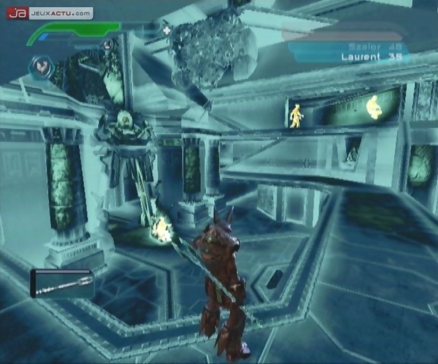 Proposant différents personnages déblocables au fur et à mesure de votre évolution, Unreal Championship 2 : The Liandri Conflict compte tout autant de nouvelles approches. Au-delà de son apparence, chaque avatar dispose en effet de mouvements, d’armes et surtout de fatalités qui lui sont propres. Une fois votre choix effectué, il vous restera alors à choisir deux autres armes pour compléter votre arsenal. Dispatchées en deux catégories (armes à munitions d’énergie et armes à explosifs), on retrouve en vrac l’indémodable lance-roquettes et le lance-grenades, le canon Flak toujours aussi efficace de près, les lames aiguisées de l’éventreur, le fusil de choc et ses sphères explosives, le BioFusil et sa gelée verte, le Dard et enfin un fusil de sniper pour les accros du headshot. Utilisables avec la vue à la troisième personne imposée lors de l’utilisation des armes rapprochées, on préférera pour cet équipement plus « traditionnel » revenir à notre bonne vieille vue subjective qui, si elle ne permet pas d’avoir un champ aussi large, reste toujours plus précise. Au début de chaque partie, ces armes seront toutefois vides et, en attendant de récupérer les munitions éparpillées sur l’arène de jeu, il va falloir se contenter des deux armes de base de votre joueur : une arme de corps à corps, et le plus souvent une arme pour assommer votre adversaire. Bien utilisée, celle-ci vous permettra de mettre KO votre cible qui, une fois dans les vaps, pourra vous servir de cobaye pour essayer vos fatalités. Equipé de votre arme de poing, il vous faudra alors s’approcher de votre victime pour reproduire une séquence de touches, avant que la pauvre proie ne revienne à elle. Pour varier les plaisirs et vous compliquer la tache, les combinaisons à reproduire ne seront jamais identiques et seuls vos réflexes vous permettront de réaliser proprement cette attaque ultime et d’en apprécier les effets.