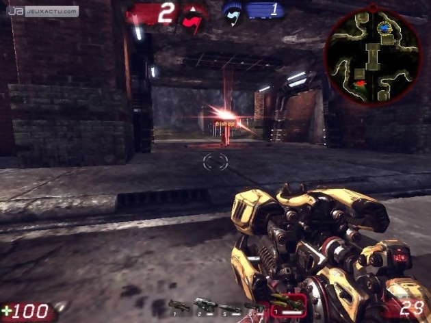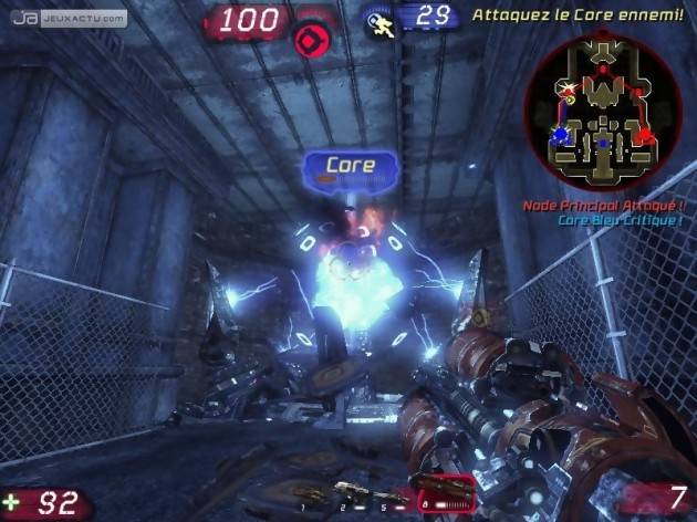 De la réactivité, il vous faudra en faire preuve à chaque instant de cet Unreal Tournament III, et tout particulièrement dans les affrontements furieux du bien-nommé mode Guerre. Dans celui-ci, deux équipes s'affrontent et doivent détruire le générateur de la base adverse en l'arrosant copieusement de balles. Pour pouvoir y parvenir, vous devez préalablement prendre le contrôle – et le garder – d'un certain nombre de générateurs alternatifs (les nods) dispersés sur la carte. Pour vous imposer à chaque checkpoint, vous devez détruire le noyau énergétique de votre ennemi si celui-ci occupe déjà les lieux, tâche longue donc dangereuse, ou le convertir en apportant sur place une sphère d'énergie produite dans votre base. Le porteur de la sphère, qui peut faire basculer le cours de la bataille, devient alors une cible et la destruction de votre précieuse baballe constitue l'un des principaux objectifs de vos opposants. C'est stressant et ludique, mais la tâche est malaisée si les deux équipes en présence sont d'un niveau équivalent, chaque nod passant alternativement d'un bord à l'autre sans qu'aucun camp ne parvienne à prendre l'ascendant. L'extrême hétérogénéité des participants en ligne (pourvu que ça dure !) limite pour le moment ce genre d'incidents, mais d'ici quelques mois, lorsque la communauté se sera stabilisée, les parties risquent de se jouer sur le fil.