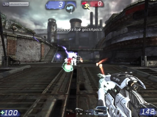 Gears of War s'est pourtant énormément inspiré la licence-phare de l'équipe de Mark Rein. Univers et bestiaire assez proches, même esprit "maximum biscotos – zéro ciboulot", les joueurs d'Unreal n'ont pas été particulièrement dépaysés par la super-production qui a fait exploser la Xbox 360. Mais là où Gears of War tire sa force d'une campagne menée tambour battant, Unreal Tournament III est tout entier construit sur des modes de jeu communautaires. S'il offre tout de même quelques séquences à destination des sociopathes, le solo n'est absolument pas scénarisé et se résume à une succession de cartes dont la seule finalité est de vous faire découvrir les différents modes de jeu et de vous habituer au rythme frénétique des parties. Fidèle à sa propre tradition, le Tournament est en effet une compétition d'une férocité et d'une vélocité hors-norme. Loin de la vivacité arthritique de nombreux concurrents, l'action affiche ici une vigueur surnaturelle, voire tétanisante. Vitesse de déplacement élevée, cadence des flingues rapide, cartes organisées de façon à favoriser les grands moments de stress et les rencontres impromptues au détour d'un corridor, tout semble avoir été pensé pour diminuer drastiquement la part de cardiaques dans la caste des gamers. Le nombre de modes disponibles a même été considérablement réduit depuis UT 2004, afin d'éviter aux utilisateurs de trop se disperser, mais également en vue de garantir un équilibre de jeu parfait. Deathmatch et deathmatch par équipe, Capture de drapeau et CDP avec véhicules, Guerre et Duel, les tueurs forcenés ne risquent pas de se perdre dans les règles. Cette relative austérité est bel et bien compensée par un level design imparable, un arsenal idéal et une efficacité remarquable.