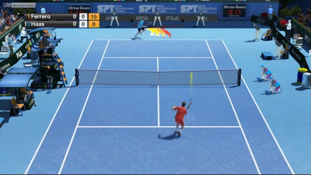 Cela se ressent immédiatement en termes de réalisation qui, à notre grand désarroi, n’a pas changé depuis la sortie de Virtua Tennis 3. Le soft n’en demeure pas moins agréable à regarder, mais dans un secteur où l’évolution graphique est une priorité, on se demande si les concepteurs ne se sont pas volontairement tirés une balle dans le pied. Car si les graphismes de Virtua Tennis 2009 ne choquent pas dans leur ensemble, une fois qu’on commence à entrer dans les détails, c’est une autre paire de manche. La modélisation hasardeuse des joueurs par exemple ne peut plus faire illusion. A l’exception peut-être d’un Juan Carlos Ferrero et d’un Novak Djokovic potables, les autres personnages du jeu ont été sacrément bâclés. Il suffit de jeter un œil au rendu 3D de Rafael Nadal, Tommy Haas ou bien encore Ana Ivanovic pour se rendre compte à quel point ils ne ressemblent à rien. Et pour peu qu’ils soient crapuleux, nos stars de la raquette pourraient exiger un dédommagement pour un travail aussi lamentable. Cela serait une goutte d’eau dans un océan si le reste des graphismes étaient réussis, mais il n’en est rien. L’ensemble des personnages ont en effet conservé l’aspect poupée de cire que pouvaient avoir les premiers jeux au moment de l’arrivée de la HD, figeant totalement leurs tenues vestimentaires qui arborent les mêmes plissures quelque soient les mouvements. Quant à l’animation, elle manquait déjà de souplesse dans Virtua Tennis 3 et accuse aujourd’hui le poids des années puisqu’aucun changement notoire n’a été effectué. Toujours parmi les défauts de cette cuvée 2009, on notera l’absence d’ambiance sur les courts, la faute à un public peu réactif, et qui n’applaudit vraiment qu’au dénouement d’un échange épique. Ce dernier a tendance à somnoler dans son coin et l’on conseille vivement à Sumo Digital de s’inspirer de la série NBA 2K pour gagner en galon. Aussi, pour masquer cette somnolence permanente, les développeurs ont opté pour une bande-son proéminente, faite de musiques d’ascenseur qui aura vite fait de nous casser les tympans. Cette musique insupportable est inhérente à la série a-t-on l’impression, puisque depuis les débuts de la franchise en Arcade, il semblerait que ce soit le même compositeur qui soit toujours à l’œuvre. A notre humble avis, il serait temps de s’en débarrasser…