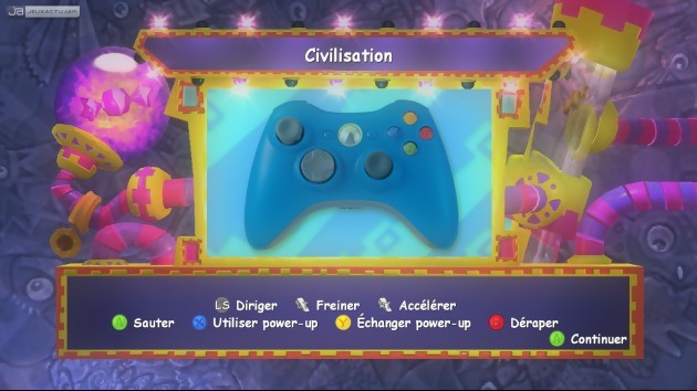 Les fans de l’univers Viva Piñata seront ravis de retrouver leurs bestioles favorites, d’Isidore Canasucre à Eric Mélisson en passant par Freddy Goupimiel, Boubou Guimours et leur double au féminin. Huit personnages qui, malgré leur corpulence différente, n’ont quasiment aucun point fort ou point faible dans le jeu à la différence d’un Mario Party. Par conséquent, le choix de votre avatar importe peu et c’est également dans cette optique que l’on enchaîne un à un les défis entrecoupés de courses (à pieds) façon Mario Kart. Car si les développeurs de Krome Studios ont chercher à créer des challenges inédits, ils ont fait l’impasse sur un quelconque scénario. Voilà qui fait tâche face à l’adaptation Xbox 360 de Rayman contre les Lapins Crétins et même face au mauvais Fuzion Frenzy 2. Pour se consoler, on se dira que Viva Piñata : Party Animals contient une cinquantaine de mini-jeux. Chouette !. Le jeu se découpe en plusieurs manches avec pour chacune des manches une course et deux épreuves opposant quatre concurrents, humains ou contrôlés par l’ordinateur. Concernant les courses, hormis le fait qu’elles se déroulent à pieds (ou plutôt à pattes), elles ressemblent comme deux gouttes d’eau à ce que l’on peut trouver dans Mario Kart : raccourcis, zone de boost, power-up… Le but du jeu, vous vous en doutez, consiste à franchir la ligne d’arrivée avant les piñatas concurrentes en usant de tous les stratagèmes possibles et inimaginables. Dégainer un missile fiesta pour faire la fête au postérieur de votre adversaire, renverser du miel sur la chaussée ou augmenter sa vitesse à l’aide du jetpack, tous les coups sont permis et les autres challengers ne se gêneront pas pour vous mettre des bâtons dans les roues. Amusant les quelques premières fois, les courses deviennent vite rébarbatives à cause des tracés beaucoup trop classiques et un manque d’idée dans leur design. Certes, elles reprennent l’univers colorés de Viva Piñata. Mais ce n’est pas assez pour renouveler le plaisir de s’aligner sur la grille de départ. De plus, et là je me retourne vers les joueurs qui n’ont pas d’amis et qui n’ont pas accès au Xbox Live, le titre reste très facile sûrement pour ne pas dérouter les jeunes gamers mais un peu de piquant n’aurait pas fait de mal au replay-value du soft.
