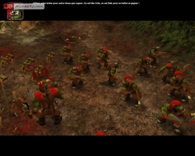 Les unités justement parlons-en ! Elles fonctionnent selon le bon vieux principe de pierre-papier-ciseaux. Aucune unité n’est donc invulnérable mis à part une unité unique sur laquelle je reviendrai plus tard. Ici, toutes les unités piétonnes, les troopers, sont fabriquées en escouade. Et c’est l’une des caractéristiques du jeu là encore. En effet une escouade, même composée de 8 soldats ne peut compter que pour 1 ou 2 hommes dans le compteur des troupes limitées à 20. Ensuite chaque escouade est personnalisable comme dans le jeu de plateau : je rajoute un sergent, je mets une arme lourde à celui-ci (un fuseur), une autre à celui-là (un lance-flammes). Ce sont ces customisations qui donnent tout son sel au jeu car cela permet réellement de renverser une situation, et une escouade en théorie peu encline au combat lourd peut y faire face. On retrouve cette customisation sur certains véhicules, ce qui permet d’obtenir des combinaisons plus efficaces selon l’adversaire. Parmi les unités, certaines ne fonctionnent pas en escouade et sont uniques ou presque sur le terrain : les médics sont produits un à un, les psykers également (troupes disposant de pouvoirs magiques) et surtout les héros sont véritablement uniques. Ces derniers sont, comme dans Warcraft 3, véritablement plus forts et disposent de coups et pouvoirs uniques. Tous ces héros ou unités uniques peuvent être ajoutés à une escouade et font, par la suite, intégralement partie d’elle avec la possibilité de les retirer à tout moment. Cette unité sortant de la sacro règle de pierre-papier-ciseaux et polyvalente, est réellement monstrueuse et l’ennemi aura véritablement du mal à en venir à bout, mais là encore c’est toujours possible. En sus de leurs points de vie, les unités disposent d’une barre de moral. Quand celle-ci atteint un seuil critique (par de lourdes pertes, par l’apparition d’un ennemi imposant), vos troupes se démoralisent et prennent alors la fuite ou encore se mettent à tirer de manière complètement aléatoire et assez inefficace. Pour palier à ce genre de problème, un sergent dans une escouade renforce son moral et dispose même d’un pouvoir pour rappeler ses troupes à l’ordre. Les champions viennent aussi jouer ce rôle et disposent d’une sphère d’influence assez vaste autour d’eux pour en faire bénéficier plusieurs unités. Cette forte influence du moral est vraiment un plus car si certaines races peuvent jouer la carte du surnombre (les orcs notamment), ils payent généralement cette différence par un faible moral. C’est d’ailleurs un des points forts du jeu de plateau qui a été ici repris.