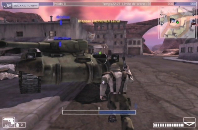 Ce qui l’est moins en revanche, ce sont les fantassins. Jouissant d’une animation assez risibles, les soldats dans Warhawk ont bien évidemment du mal à faire le poids face aux autres engins. Certes, ils disposent de tout un attirail qui leur permettent de se défendre bec et ongles, mais il est assez rare de sortir vainqueur d’un affrontement face à un Warhawk ou une tourelle de défense, qui utilisent des armes bien plus performantes. C’est pourquoi, il est assez utile d’unir ses forces pour attaquer à plusieurs. Et pour cela, la jeep est l’engin adéquat pour accueillir plusieurs soldats. Capable de transporter jusqu’à trois fantassins, la jeep est un véhicule tout-terrain qui compense son blindage léger grâce à une sa vitesse. Malheureusement, il est conseillé d’être au moins deux soldats pour pouvoir l’utiliser correctement, la conduite et le tir à la mitraillette n’étant pas possible en solo. Dans la même veine, le char permet aussi à deux soldats de jouer en tandem. Evidemment lent, ce dernier se montre féroce pour percer les lignes ennemies et détruire rapidement les appareils aériens en plein vol. Afin de dynamiser l’action, des items sont posés un peu partout sur la map, afin de recharger ses munitions et éviter de se retrouver avec comme seule arme un simple couteau. Mieux, certains bonus permettent de réparer son appareil et ce, même en plein vol.