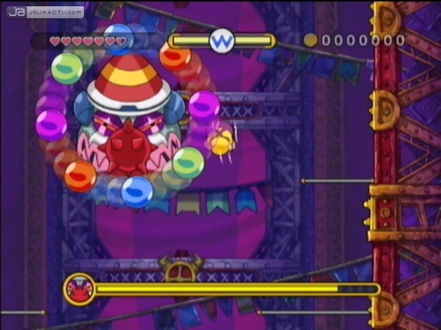 Plutôt bien calibré, aussi bien dans sa réalisation que dans son gameplay, Wario Land : The Shake Dimension renoue avec les sensations d’antan et l’on se prend rapidement au jeu. Seulement voilà, avec cinq mondes uniquement, découpé chacun en quatre niveaux + un Boss à abattre, Wario Land : The Shake Dimension offre une durée de vie beaucoup trop courte, d’autant que le challenge d’autrefois n’est clairement pas au rendez-vous. Les ennemis, bien que sympathiques manquent de variété, mais surtout d’agressivité pour inquiéter notre héros ventripotent. De même, le level design, peu inspiré, montre rapidement ses faiblesses au bout du troisième monde, où le sentiment de se taper à peu près les mêmes niveaux se fait terriblement sentir. Du coup, ceux qui ne portent guère attention aux petits bonus cachés ne se soucieront guère de la replay-value, pourtant bien présente dans le jeu. Autre reproche : l’obligation, une fois le niveau terminé, de revenir sur ses pas le plus rapidement possible prouve que les développeurs se sentaient obligés de nous resservir une dose supplémentaire pour palier le manque flagrant de longévité dans la construction des stages. Fort heureusement, Wario Land : The Shake Dimension se rattrape aisément grâce aux Boss, imposants, souvent bien trouvés et qui permet de faire usage de la plupart des fonctionnalités offertes par la Wiimote. C’est déjà pas mal.