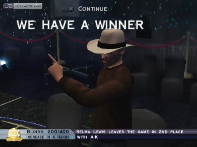 Etant donné le grand nombre de jeux de poker et plus particulièrement de Texas Hold’em à voir le jour mensuellement, on passera rapidement sur la gestion de l’intelligence artificielle de World Series of Poker : Tournament of Champions 2007 Edition durant les tournois du World Series of Poker, les invitations spéciales ou les têtes à têtes télévisés, pour la simple est bonne raison qu'on a toujours un doute sur la crédibilité de l’ordinateur qui connaît forcément votre jeu vu qu’il est à la fois le croupier, l’adversaire et votre conseiller (ici Chris Ferguson). Trois degrés de difficulté vous sont proposés mais pour plus de challenges, mieux vaut se tourner vers les modes multijoueurs uniquement jouables en ligne où l’art du bluff prend tout son sens. Mais concentrons-nous essentiellement sur la réalisation générale de ce World Series of Poker : Tournament of Champions 2007 Edition développé comme l’an passé par Left Field Productions. A vrai dire, la team n’a guère changé de recette pouvant ainsi espérer séduire tant les novices, grâce à une notice suffisamment explicative sur les différents poker existants, que les Patrick Bruel habitués aux tournois longs d’une dizaine d’heures. Mieux vaut être patient lorsque vous jouez à WSP : Tournament of Champions car les adversaires prennent le temps de réfléchir, d’agir et de réagir en fonction de vos mises. Et même lorsqu’on se retrouve nez à nez avec des grands champions tels que Tom "Captain" Franklin, Joe Hachem, Scotty Nguyen ou encore face à Jen Tilly, ça de quoi nous chauffer les oreilles que de devoir patienter 20 à 30 secondes sur chaque participant. Quant la table compte huit amateurs de poker, on fait rapidement un détour par les options espérant pouvant accélérer le rythme du jeu. Effectivement on peut mais les 3 vitesses de réflexion sont mal étudiées. Tantôt trop lentes, tantôt ultra-rapide qu’on n’a pas le temps d’apprécier le jeu ni la gestuelle et les mimiques des personnages qui sont devenues caractéristiques des grands joueurs de texas hold’em. Si l’animation amusera les téléspectateurs de RTL 9 ou de Direct Poker, on ne peut pas en dire autant de la réalisation graphique de World Series of Poker : Tournament of Champions 2007 Edition. Le jeu, déjà pas fameux en 2006, a pris encore quelques rides et a même le toupet de s’offrir de multiples bugs d’affichage lorsqu’on accélère le rythme quasiment soporifique des parties. A propos de rythme, ce n’est pas non plus l’ambiance sonore qui relèvera le niveau avec des commentateurs narcoleptiques et des réactions du public inappropriées.