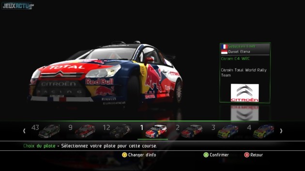 Ne faisons pas durer le suspense plus longtemps : WRC est une sacrée déception. Visuelle tout d'abord, avec une modélisation des véhicules qui manque cruellement de caractère. Quand on a mangé du SEGA Rally et que l'on voit les merveilles que Codemasters est capable de produire avec son EGO Engine - la série Colin McRae : DiRT entre autres -, on se dit qu'il y a un problème quelque part. Les textures sont archi laides, les environnements ultra vides et les effets inexistants. Sans doute le prix à payer pour ne pas s'embarrasser avec des ralentissements foireux, l'animation de WRC se montrant particulièrement solide. Pour autant, la sensation de vitesse est loin d'être convaincante, au même titre que les dégâts qui sont beaucoup mieux retranscrits chez les voisins. Enfin, la vue cockpit fait mal au crâne, et on se demande sincèrement comment de telles approximations au niveau de l'intérieur des machines peuvent encore exister à l'heure actuelle. Après s'être détruit les yeux pendant quelques courses, on peut enfin se concentrer sur le contenu de WRC qui sauve les meubles. Heureusement d'ailleurs, puisqu'il s'agit quand même de la licence officielle, ce qui inclut non seulement les pilotes que les lecteurs de L'Equipe connaissent par coeur (Sébastien Loeb naturellement, mais aussi Mikko Hirvonen, Sébastien Ogier, Marcus Gronholm, ou bien encore Petter Solberg), mais aussi les circuits officiels figurant au calendrier du championnat - Nouvelle-Zélande, Turquie, Mexique, Finlande, Alsace, Japon pour ne citer que ceux-là. Bien sûr, toutes les écuries sont contenues dans la galette du jeu, et on apprécie également le fait que les copilotes ne soient pas restés au placard. Enfin presque, car ils se montrent assez fébriles en lisant les notes. Comme on pouvait s'y attendre, WRC dispose d'un mode "Carrière" dans lequel il va falloir gravir un à un les échelons pour parvenir l'élite mondiale, en remplissant toutes sortes d'objectifs. Avant d'être en mesure de piloter une WRC comme les grands, il va falloir faire ses preuves et se contenter d'une J-WRC pour débuter ; autant dire que l'on s'ennuie ferme pendant les premières heures de jeu. Une Suzuki Swift ou une Citroën C2, c'est vrai que ce n'est pas très enthousiasmant.