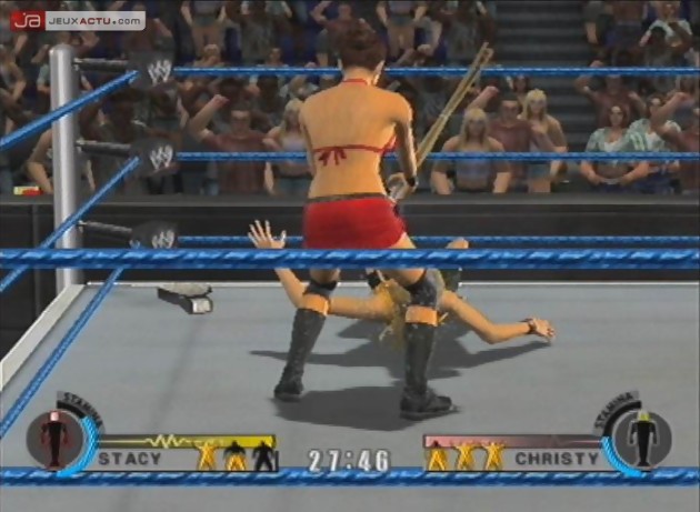 Les graphismes du jeu exploitent réellement les capacités de la GameCube (NDMaxime : t'as pas dû jouer à Resident Evil 4 alors...) avec un soin apporté à la modélisation des catcheurs et une définition des prises de lutte vraiment proche de la réalité. La jouabilité est instinctive et on prend vraiment son pied à déplacer son lutteur et à lui faire effectuer toutes les prises possibles avec une rapidité d’exécution d’enfer. Si au début d’un match, on domine facilement son adversaire avec une certaine facilité à encaisser les coups puis à se relever, la difficulté ira crescendo au fil du temps et il faudra taporterr comme un malade sur les touches pour se donner une chance de s’en sortir. Avec son mode scénario et ses nombreux lutteurs ainsi que les différents styles de combat possibles, la durée de vie est donc conséquente surtout si on se donne la peine de trouver quelques fans de catch qui viendront participer au pugilat avec la possibilité d’organiser des matchs jusqu'à 4 joueurs en même temps sur le ring. Le seul vrai point noir du jeu réside dans au niveau de la bande son, notamment de la qualité parfois médiocre des musiques qui viennent entacher les parties surtout lorsque l’on est coincé entre les cordes. Il est également dommage de constater l'absence des voix des lutteurs pendant les phases "back stages", qui auraient apporté un coté convivial supplémentaire. Par contre, on ne peut que s’incliner devant les entrées toujours spectaculaires des lutteurs (NDMaxime : ridicules tu veux dire non ?), identiques à la réalité avec les musiques officielles des catcheurs mais aussi les jeux de lumière et autres feux d’artifices qui les accompagnent.
