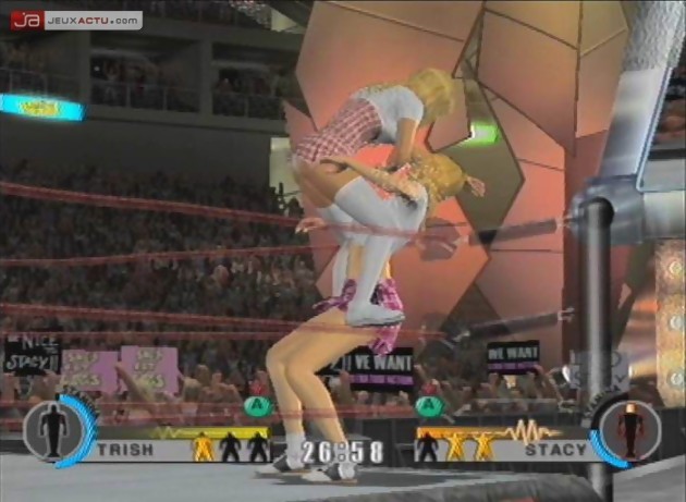 Les graphismes du jeu exploitent réellement les capacités de la GameCube (NDMaxime : t'as pas dû jouer à Resident Evil 4 alors...) avec un soin apporté à la modélisation des catcheurs et une définition des prises de lutte vraiment proche de la réalité. La jouabilité est instinctive et on prend vraiment son pied à déplacer son lutteur et à lui faire effectuer toutes les prises possibles avec une rapidité d’exécution d’enfer. Si au début d’un match, on domine facilement son adversaire avec une certaine facilité à encaisser les coups puis à se relever, la difficulté ira crescendo au fil du temps et il faudra taporterr comme un malade sur les touches pour se donner une chance de s’en sortir. Avec son mode scénario et ses nombreux lutteurs ainsi que les différents styles de combat possibles, la durée de vie est donc conséquente surtout si on se donne la peine de trouver quelques fans de catch qui viendront participer au pugilat avec la possibilité d’organiser des matchs jusqu'à 4 joueurs en même temps sur le ring. Le seul vrai point noir du jeu réside dans au niveau de la bande son, notamment de la qualité parfois médiocre des musiques qui viennent entacher les parties surtout lorsque l’on est coincé entre les cordes. Il est également dommage de constater l'absence des voix des lutteurs pendant les phases "back stages", qui auraient apporté un coté convivial supplémentaire. Par contre, on ne peut que s’incliner devant les entrées toujours spectaculaires des lutteurs (NDMaxime : ridicules tu veux dire non ?), identiques à la réalité avec les musiques officielles des catcheurs mais aussi les jeux de lumière et autres feux d’artifices qui les accompagnent.