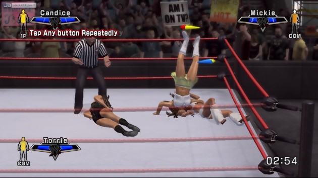 Si WWE Smackdown ! VS Raw 2007 reprend les bases fondamentales du précédent volet, il apporte également sont lot de petites nouveautés et autres trouvailles pour appâter une fois de plus le chaland. On note alors une gestion des coups et autres attaques par le biais du stick analogique droit. En fonction des quatre axes disponibles, le joueur peut alors varier ses mouvements et ses choppes au corps à corps. On s’amuse alors à affaiblir les différentes parties du corps de son adversaires, en l’occurrence les deux bras et les deux jambes, représentées à l’écran par une jauge de vulnérabilité. Bien évidemment, plus la jauge se vide et plus son catcheur perd de ses forces. Il mettra alors plus de temps à se relever et ses attaques seront beaucoup moins efficaces. Le titre prend également en compte la gestion de fatigue et taper sans temps mort sur un antagoniste est sanctionné par le jeu. Il faut donc faire un peu plus preuve d’intelligence pour remporter un combat, et utiliser les différents éléments du ring et du décor permet de se sortir de bien de situations critiques. Si WWE Smackdown ! VS Raw 2007 réalise un sans faute en matière de contenu et de fidélité de la licence, on dénote quelques défauts par-ci par-là tels que ses satanés bug de collision qui gâche parfois un spectacle pourtant appétissant. Les déplacements de personnages également manquent parfois de souplesse et il arrive aussi d’être frustré par l’impossibilité de se défaire d’une avalanche de coups portés par son adversaire. De même, le nombreux et fréquents temps de chargements gâchent aussi le plaisir, même si dans l’absolu on a vu bien pire.