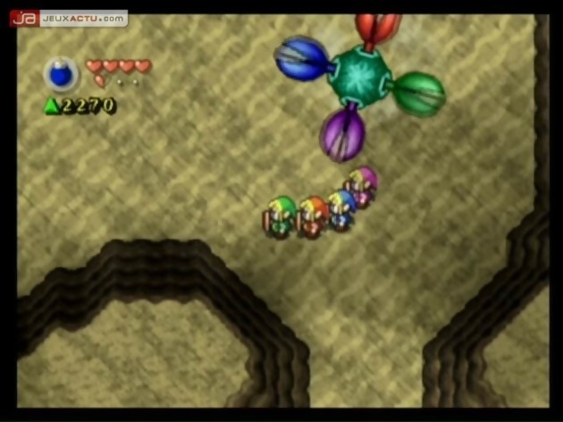 Tester un Zelda est, et sera toujours, un honneur pour tout journaliste de ce milieu (NDRC : Ouais, c’est ça…). Une sorte de consécration qui fait qu’on est passé du rang de stagiaire ou de pigiste occasionnel, à celui de Daron en chef (NDRC : bah non, justement, le chef, c’est moi !). Bref, une bénédiction qui risque de fuir Laurely encore quelques longues décennies (NDRC : Ca, par contre, c’est vrai !). Tester un Zelda est certes un honneur, mais déjà que c’est particulièrement long et prenant, alors quand il s’agit d’une version multijoueur, on transforme le test en casse-tête. Mobiliser une personne pendant plusieurs jours sur un jeu ce n’est déjà pas évident, mais quand il faut en trouver quatre ça devient problématique. Rodolphe en vacances, Maxime sur ses jeux Neo Geo et Laurent sur MechAssault 2 ou Still Life, je me sentais bien seul avec mon GameCube et mes trois GBA SP flambants neuves. J’ai tout de même réussi à séquestrer Laurent une journée pour tester ce premier Zelda multijoueur de la série.