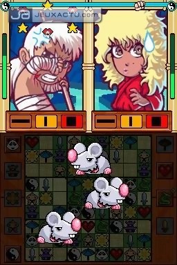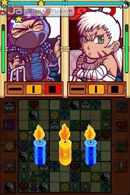 Dès l’allumage de la console, on sent que Zoonami s’est investi. Contrairement à l’austérité caractéristique des essais précédents, la première chose qui nous saute ici aux yeux est la qualité de l’habillage. Les développeurs ont créé un univers nippon, kawaii tout plein autour de leur concept de Zendoku. Un petit background a ainsi été créé avec ses personnages et leurs propres histoires. Limité, mais sympa. Ici fini les chiffres, place à de petits symboles qu’il faudra correctement placer dans des grilles classiques de Sudoku. D'autres softs du même genre avaient déjà tenté de faire varier le principe de base avec des divers dessins. Mais si les règles restent les mêmes, il ne s’agit pas là d’un simple maquillage destinant à nous tromper. Tout le concept du Zendoku tourne autour d’un système de duel où chaque ligne, colonne, carré de 3 sur 3 ou série de symboles complétés enverra à l’adversaire une attaque, qui se traduira par un mini-jeu dont il devra s’acquitter pour poursuivre sa grille. Loin d’être insignifiant, ce système vous permet de voir sur une barre dédiée le type d’attaque et le moment où vous serez frappé. Vous ne serez cependant pas une passive victime de tout ce manège car il est possible de se renvoyer les attaques. Un système de combo est présent afin d’enquiquiner davantage l’adversaire avec une attaque plus puissante. DS oblige, ces mini-jeux exploitent intelligemment les spécificités de la machine. Il faut, à la manière d’un WarioWare Touched, jouer du stylet et de votre souffle pour revenir à l’objectif principal. Peu variés, ils amèneront tout de même un peu plus de tension cassant la monotonie d’une partie de Sudoku classique, renforçant par là même le sentiment de compétition. Joueurs solitaires, les quêtes principales sauront vous tenir en haleine un bon moment, avec des persos supplémentaire à débloquer. Vous pourrez également vous exercer aux mini jeux. D’anecdotiques modes contre la montre et zen sont disponibles, puisqu’il s’agira réellement pour le coup d’un Sudoku déguisé. Encore plus inutile quand on sait qu’un mode Sudoku classique est présent.