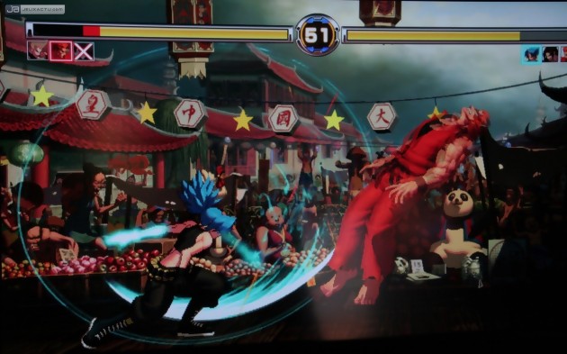 Etant donné la popularité du titre et le nombre impressionnant de clics générés sur la preview de The King of Fighters XII, nous avons décidé de vous faire plaisir et de vous dévoiler quelques screenshots inédits du jeu. Il s'agit d'images screeners réalisées par nos soins, puisque photographiées directement depuis la borne d'arcade, sous l'oeil autorisé de SNK Playmore et de son producteur Masaaki Kukino, lors du Tokyo Game Show 2008. Et puis, histoire d'être exhaustif, on vous balancera un petit clip vidéo du jeu d'ici quelques jours. C'est cadeau !