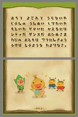 Après une campagne teasing et quelques vagues apparitions chez Famitsu, Irozuki Tingle no Koi no Balloon Trip est enfin autorisé à dévoiler sa trombine de manière officielle. Nintendo vient effectivement de mettre en circulation les toutes premières images de ce jeu d'aventure dans lequel on devra aider Tingle à trouver l'amour et une princesse qui voudra bien lui accorder une danse. Prenant place dans un livre, Irozuki Tingle no Koi no Balloon Trip offrira visiblement un déroulement assez singulier puisqu'il s'agira de colorer les différentes pages en réalisant des actions bien précises. L'utilisation du ballon de baudruche permet alors de naviguer entre les pages, ce qui autorisera notamment d'observer les conséquences de certains de nos choix d'un tableau à l'autre. La sortie de Irozuki Tingle no Koi no Balloon Trip est toujours calée au 6 août.