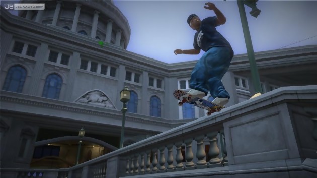 Graphiquement, la notion de next gen’ peut enfin être employée. Sans atteindre la performance d’un Dead Rising, Lost Planet ou bien encore Gears of War, Tony Hawk's Project 8 propose cependant une réalisation digne de figurer sur Xbox 360. La modélisation et l’animation des personnages font d’ailleurs partie des atouts les plus réussis du jeu. Expressions du visage, mouvements réalistes des tenues vestimentaires, animations fluides, les développeurs ont rentabilisé l’achat de leur studio de motion capture, c’est évident ! On notera en revanche un comportement des rag dolls (les corps inertes des personnages lorsqu’ils chutent par exemple) un peu exagéré avec des mouvements qui donnent encre l’impression d’avoir affaire à une vulgaire poupée désarticulée. Passé ce fluet détail et les quelques bugs qu’on pourrait presque qualifié d’inhérent au concept, Tony Hawk's Project 8 se défend plutôt bien ! Il faut bien admettre que l’ajout du slow motion conjugué au focus mode permet de dynamiser le gameplay d’une manière cinématographique. Le slow motion se déclenche une fois la jauge en haut à gauche de l’écran remplie et permet au joueur de ralentir l’action tout en étant libre de déplacer l’angle de vue via le stick analogique droit. Il n’y a pas vraiment d’intérêt dans le gameplay si ce n’est d’apporter un côté frime au jeu. Quoi de plus normal donc que de se centraliser sur le focus mode qui possède en revanche une véritable plus-value. Une fois activé, il permet de se focaliser sur les figures aériennes, chaque stick analogique de la manette contrôlant chacune des jambes de son skateur. L’objectif est donc d’exécuter un maximum de figures avant de retomber au sol, tout en sachant que l’atterrissage est la finalité de l’action puisqu’il permet de valider les points réalisés dans les airs. Dans le cas contraire, ce sont des points / frais d’hospitalisation qui seront retirés à la bourse globale. De même, les environnements dans lesquels évoluent notre avatar est désormais plus fourni. Les personnages tiers déambulent naturellement et font également leurs petites affaires de leur côté. Si jamais, par mégarde ou acte volontaire, il arrivait de les bousculer, ces derniers n’auront que faire des excuses et tenteront donc de vous rendre la pareille. Le cas échéant, une petite fenêtre apparaîtra à l’écran pour nous indiquer la position du pseudo-terroriste en pleine course.