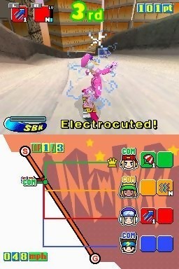 Après deux opus sur Nintendo 64, Atlus a décidé d’offrir à la nouvelle console portable de Big N une adaptation 100% tactile de Snowboard Kids. Rebaptisé pour l’occasion SBK : Snowboard Kids DS, le jeu est une fusion de Cool Boarders et de Mario Kart. Ainsi donc tricks et items seront de la partie afin d’intensifier les descentes. Et pour encore plus de fun, les développeurs ont inclus un mode multijoueur jouable jusqu’à 4 avec une seule cartouche. Le rendez-vous avec la poudreuse est fixé au 1er novembre 2005 pour les joueurs américains. L’Europe devra patienter encore un peu.