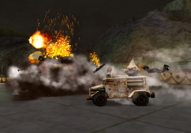 Annoncé en début de semaine, l'adaptation PlayStation 2 de Twisted Metal : Head-On revient aujourd'hui dans l'actualité à travers ces images. Rappelons que cette version bénéficiera d'un certain nombre d'ajouts exclusifs, d'une réalisation et d'une I.A. affinée, et que le tout sera sous-titré d'un joli Extra Twisted Edition pour faire plus neuf. Sortie prévue dans le courant du printemps.