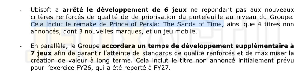 Le couperet est tombé comme ça, sans prévenir : le remake de Prince of Persia : Les Sables du Temps est de nouveau annulé. C'était déjà le cas en 2022 après une première présentation qui avait été moquée, mais cette fois-ci, il n'y aura pas dénouement favorable. Car selon Ubisoft, le jeu ne répond plus aux standards internes de qualité, et le poursuivre aurait exigé trop de temps et d’investissement. Ce remake, développé par le studio star de Montréal, avait pourtant laissé espérer une sortie entre janvier et mars 2026. Les insiders, dont Tom Henderson, y croyaient dur comme fer, et même en décembre dernier, tout laissait penser qu’un shadowdrop serait imminent. Mais le 16 janvier, date supposée de lancement, Ubisoft a choisi de couper le projet. Pour ceux qui ont suivi l'actualité de ce pauvre remake de Prince of Persia Les Sables du Temps, il faut se rappeler que ce remake avait été conçu à l’origine pour permettre à Ubisoft Pune et Ubisoft Mumbai de se former sur un projet majeur. Mais après les critiques sévères de la première bande-annonce en 2020, Ubisoft avait décidé de rapatrier le développement à Montréal, renforçant ainsi l’importance stratégique du projet. Quatre ans plus tard, le résultat est une fois de plus anéanti.
