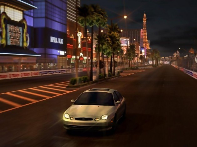 Ah la la, Las Vegas, la ville de toutes les folies… Puisque cette localité kitschissime sera traversée par les bolides de Gran Turismo 4, Sony vient de lâcher une bonne cinquantaine de nouvelles images de son jeu dans les rues de la vraie cité du vice. L’occasion pour nous de voir les célèbres hôtels de Vegas dont le Caesar Palace bien connu des amateurs du noble art ou encore la réplique de la Tour Eiffel. Quelle belle ville !
