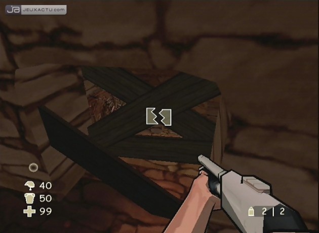 Sortez de l’eau au plus vite en utilisant l’échelle située en face de vous [Photo 105]. Ramassez donc la pelle pour l’utiliser sur le premier ennemi que vous croiserez. Un peu plus loin, un Spads ouvrira le feu dès qu’il vous verra tandis qu’un autre militaire sautera depuis la plate-forme au-dessus pour venir à votre rencontre. Sortez le M16 pour les éliminer sans bavure. En avançant, un autre militaire sortira de sa cachette par la porte située à droite, tuez-le et continuer votre marche. Juste après, vous apercevrez une pelle, ramassez-la et prenez le passage à droite [Photo 106], un Spads planqué derrière les containers surgira. Assommez-le puis monter l’échelle. Une fois sur la plate-forme supérieure, foncez tout au bout puis sautez sur le container en face pour ramasser deux grenades [Photo 107]. Descendez puis remontez à l’échelle de nouveau. A mi-chemin, sautez sur le container pour récupérer un lance harpons puis sur le container en face pour trouver deux grenades M16. Sautez sur les caisses à droite pour ramasser une trousse de secours. Non loin, vous apercevrez des containers avec des caisses posées dessus. Allez dans cette direction pour ramassez trois grenades M16 ainsi qu’un lance harpons [Photo 108]. Vous pouvez maintenant descendre et reprendre votre parcours. Longez le sous-marin par la droite puis tournez à droite dès que vous le pouvez. Deux Spads se cachent derrière des containers, ouvrez le feu puis récupérez leurs munitions ainsi qu’une grande trousse de secours et quatre grenades posées sur une caisse [Photo 109]. Revenez sur vos pas et avancez. Des vignettes apparaîtront signalant un danger imminent. En effet, une horde de soldats vous attendent plus loin. Ce des derniers étant bien équipés, armés jusqu’aux dents et cachés derrière des caisses, je vous conseille de ramassez au passage les grenades mises à votre disposition sur les caisses alentours. Dès que les Spads auront ouvert le feu, cachez-vous sur le côté droit où vous trouverez un gilet par balles ainsi qu’un casque [Photo 110]. La meilleure façon de se débarrasser de ces soldats est de leur lancer quelques grenades M16 histoire de calmer leurs ardeurs Et si cela n’était pas suffisant, n’hésitez pas à abuser de vos grenades. Une fois ceci, fait, un autre soldat sortira de la porte à droite ainsi qu’un deuxième de la porte à l’étage supérieur. Faites-leur subir le même sort que leurs camarades puis aller récolter les munitions sur les corps des Spads. Une arbalète est posée contre l’une des caisses à gauche [Photo 111], près du sous-marin, n’oubliez pas de l’attraper au passage. Monter l’échelle et prenez à droite. Entrez dans la pièce d’où sortait le soldat pour trouver une arbalète et un grand médikit. Montez à nouveau sur l’échelle qui se présente à vous. Un Spads vous attend à l’étage au-dessus, empressez-vous de l’éliminer avant qu’il n’ouvre le feu. Activer ensuite le levier pour mettre en route la plate-forme porteuse de missiles. Trois soldats arriveront au loin et essayeront de vous dégommer à distance. Sortez votre arbalète et utilisez le zoom pour les tuer. Vous pouvez utiliser les colonnes pour vous protéger de leurs tirs si le combat dure trop longtemps. Sautez ensuite sur la plate-forme porteuse de missiles et brisez les vitres de la tour de contrôle. Utilisez votre grappin sur le crochet et balancez-vous pour atteindre le toit de la tour de contrôle pour récupérer six grenades M16 [Photo 112]. Utilisez à nouveau le grappin pour, cette fois-ci, pénétrer dans la tour de contrôle. Récupérez le lance harpons et les munitions puis appuyez sur le bouton pour ouvrir les vannes [Photo 113] qui vous permettront de vous échapper du hangar. Dans la pièce derrière vous, vous trouverez une grande trousse de soin ainsi qu’un gilet par balles. Après les avoir récupéré, sautez dans l’eau et amorcez la bombe sur l’hélice du sous-marin [Photo 114]. Remontez rapidement à la surface grâce à l’échelle et mettez-vous à l’abri. Sur les caisses alentours, vous pouvez récupérer une petite trousse de secours ainsi que des harpons et l’arme qui va avec. Après que la bombe ait fait son effet, un soldat ouvrira le feu sur votre droite. Décochez-lui une flèche en pleine tête pour le calmer et sautez dans l’eau. Il va falloir longer le sous-marin par le flanc droit. Malheureusement, entre les hommes-grenouilles et les Spads postés sur le quai, vous ne pourrez pas nager tranquillement. Avancez le plus rapidement possible tout en essayant de tuer les ennemis qui viendront vous déranger. Sachez que sous l’eau, seul votre lance harpons fonctionne. Heureusement un seul coup d’harpon suffit pour éliminer un homme-grenouille. Pénétrez ensuite par la vanne de gauche [Photo 115] et suivez le conduit par la gauche. Dès que vous verrez un passage vers le haut, faites surface aussitôt pour terminer la mission.